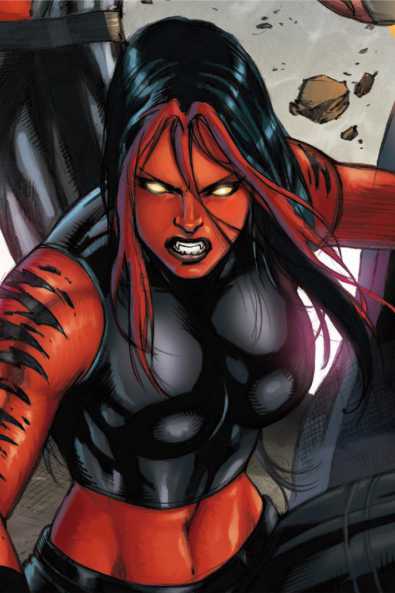 Hailing from Russia, Hellcat can transmorph into a human/tiger hybrid. Usually with a calm and gentle demeanor, she becomes vivious when she turns into her metahuman form.